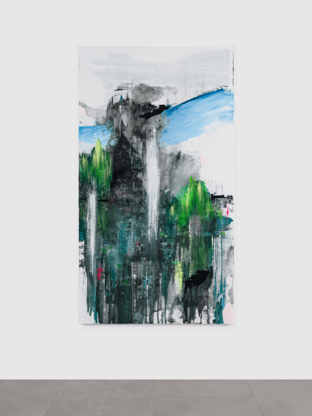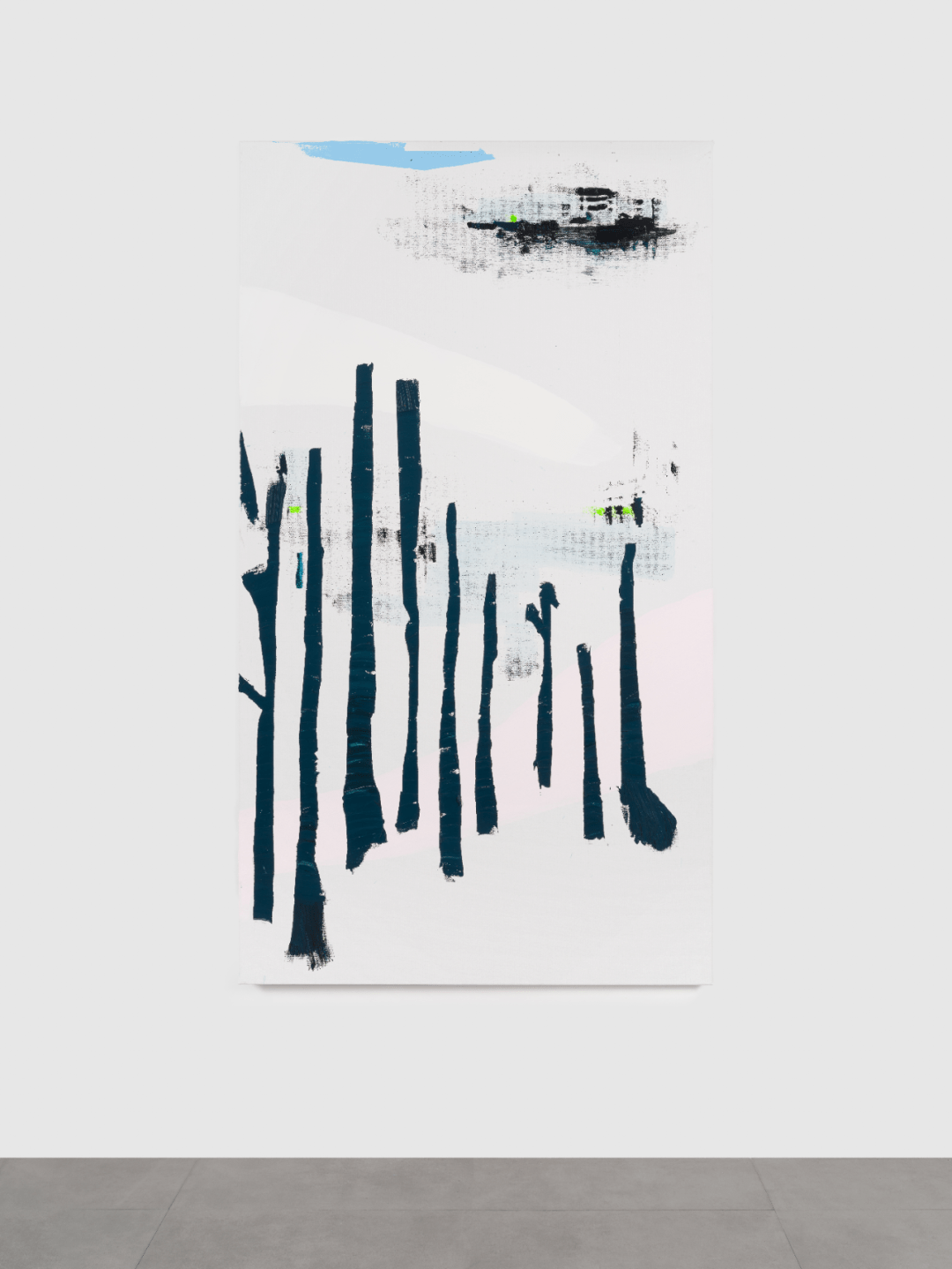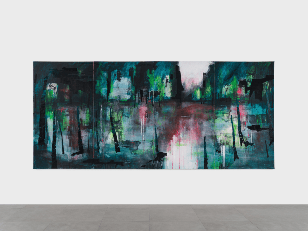 标记他体验的光之转换 – 被地铁广播与城市霓虹灯所节奏化 – 唯一打断这一切的,是垂柳。那些沿水岸高高长枝的树穿过他的视觉构图。它们的存在在艺术家的身体里回响,后来又以绿色的污迹出现于画布之上。那是运动与水性的持久记忆向绘画的转移。