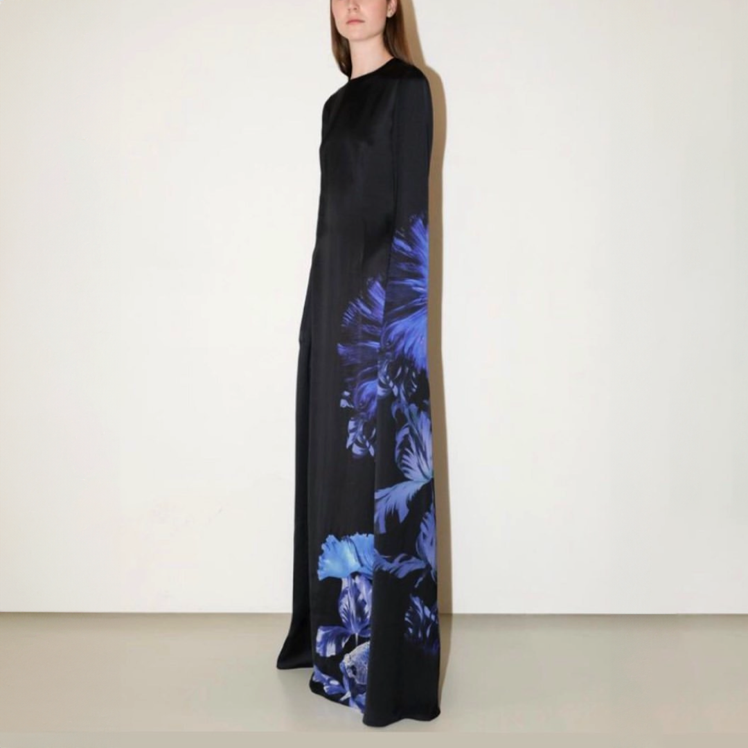 Collage artwork digitally printed on duchesse silk satin
