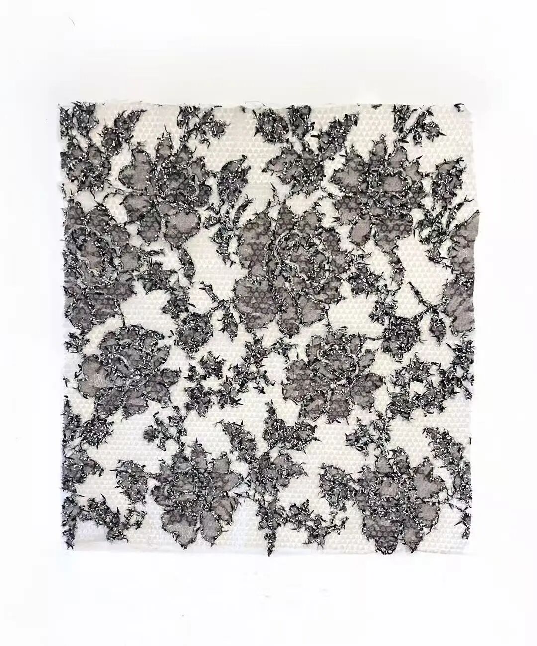 在薄纱面料上印制的刺绣图案