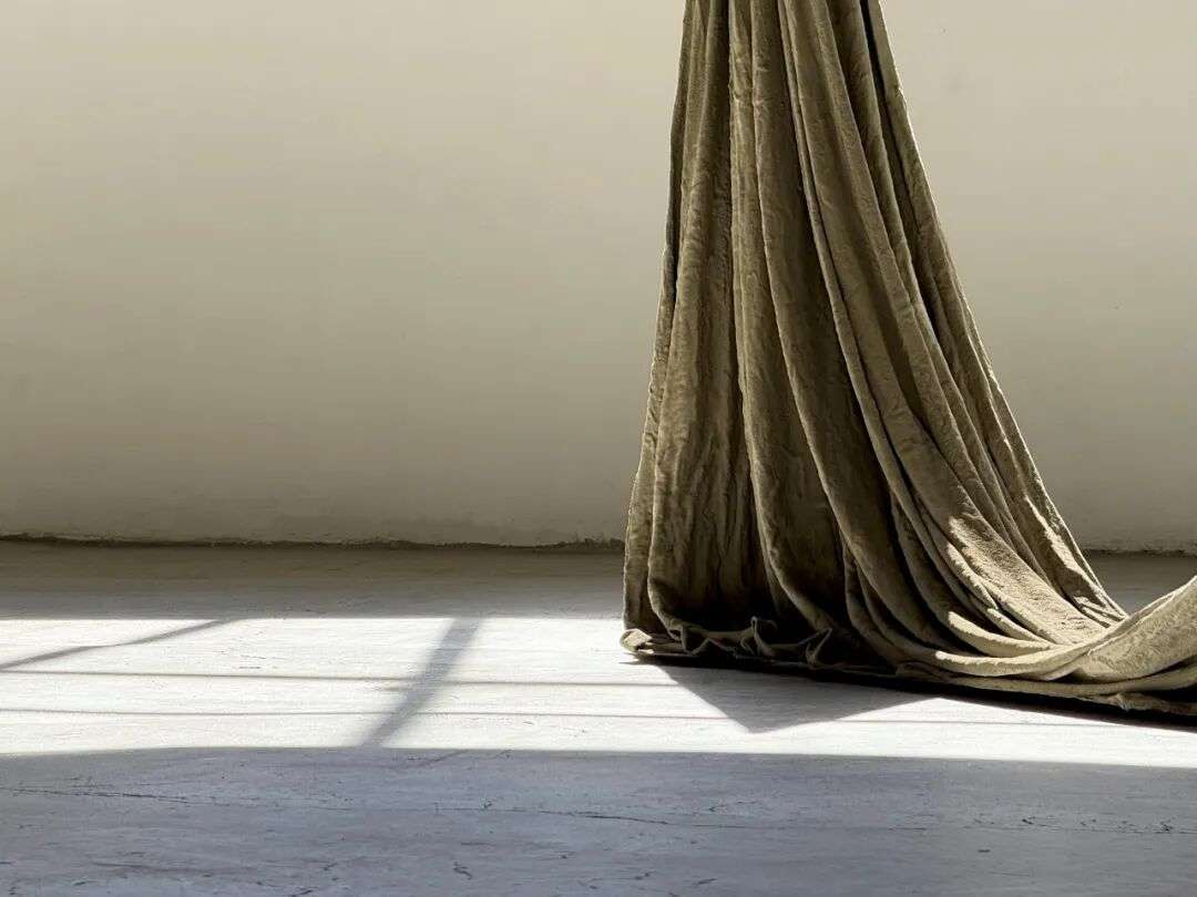 Her practice unfolds between installation and choreography, between matter and body, between human and non-human time. She explores transitional states and the kinetic presence of materials, using media such as plexiglass, concrete, fabrics, water, and fire.