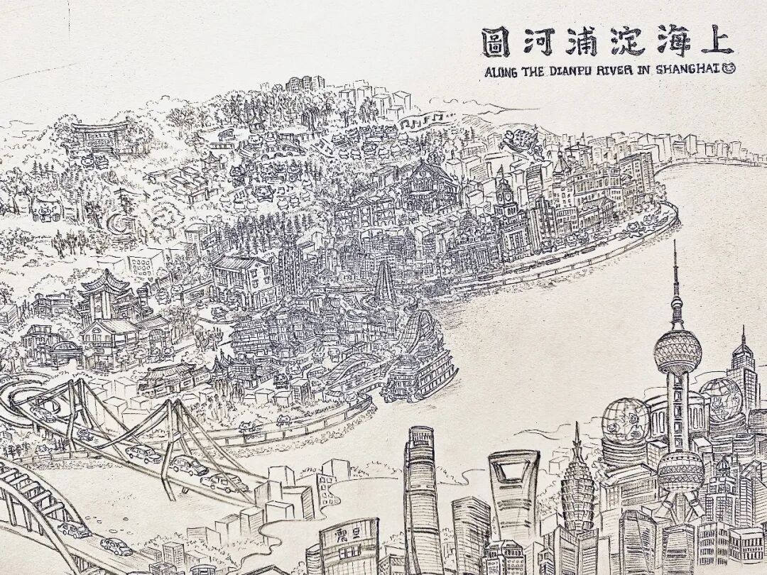 《上海淀浦河图》是香港艺术家林雪莹Lamcat的驻地作品。画作沿淀浦河,记录从朱家角到黄浦江一带的游历过程,亦收录了她与四位驻地艺术家共处的生活点滴与感受。